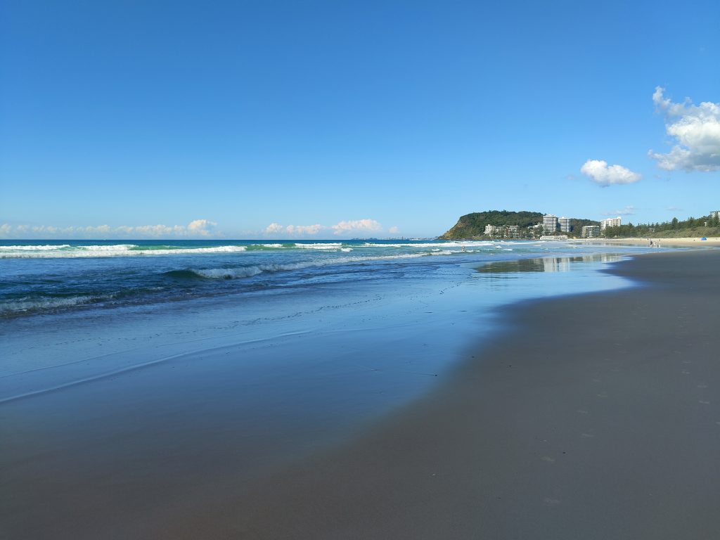 This morning we woke up and it was a bit chilly, but it looked like it was going to be a nice day. We started our morning off with a run around the creek and on a path near the beach. After getting ready for the day, we decided to go and visit nearby Burleigh Beach and go for a walk around. We went and had a look at North Burleigh Lookout. We also had a look at Miami Beach while we were in the area, then found a bench to sit and have our lunch. The weather was beautiful and it was so nice to sit outside. Because the weather was so good, we decided to go back to the caravan park and head to Tallebudgera Beach. The waves were also good so Sam got his boogie board out and caught some waves. This inspired Sam to go and have a look on Gumtree for a cheap surfboard to see if he could teach himself how to surf while we are on the trip. He found one for $20 in Burleigh Heads and planned to pick it up the next day. It was nice to relax and spend the afternoon by the beach as we haven’t had a nice day to do this in a long time. We didn’t do too much else for the rest of the day as Sam was exhausted after the run and the swim.
